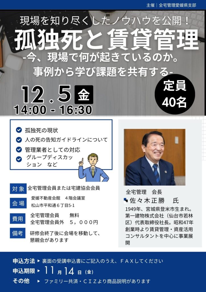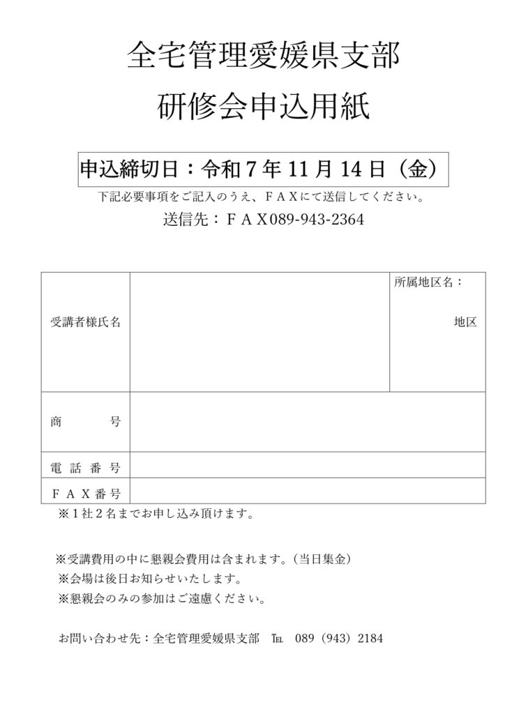 令和7年度全宅管理愛媛県支部研修会の開催が決定しました!